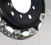 The rotor and hat mount together through a floating mount system which utilizes 8-10 high strength alloy steel drive pins manufactured by GiroDisc in the USA to our own specifications and are cadmium plated for corrosion resistance.  The alloy drive pins transfer the load from the brake action while maintaining the axial and radial float between the disc rotor and hat.  The pins are secured by Grade 12 cap screws with hardened washers and mounted with anti-noise spring washers to allow for heat expansion while eliminating the rattle and noise associated with floating rotors.
